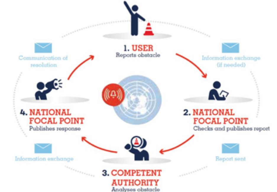 1. Report obstacles to trade encountered during the export orimport of products and services so that the competent authorities can take the necessary corrective measures;